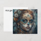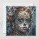 Célébrez le "Jour des Morts" avec cette carte d'art raffiné à couper le souffle représentant une femme avec un maquillage de crâne calavera turquoise et or complexe. L'œuvre d'art est un cours magistral de détails, mêlant les motifs traditionnels mexicains de crâne en sucre avec des textures éthérées et enfumées et des ornements de rose élégants dans ses cheveux. Avec ses tons bleus profonds et lunaires et son expression perçante, ce design est un moyen puissant et beau d'honorer les ancêtres ou d'envoyer un salut saisissant pour une célébration de Dia de los Muertos.