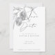 Ces cartes de mariage élégantes pour annoncer la date sont conçues avec une branche d'olivier peinte à la main à l'aquarelle noir et blanc avec des reflets de lavande subtils sous une superposition délavée. Personnalisez avec les détails de votre jour spécial pour des invitations classiques et mémorables.