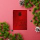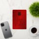 Cette carte Save the Date présente un symbole artistique de double bonheur en or et un script calligraphique sur un fond floral rouge scintillant.