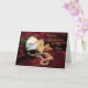 Belle carte d'anniversaire de mariage pour femme avec rose blanche et perles sur satin rouge.
