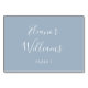Dotée de noms de style signature, cette élégante carte de lieu bleu poussiéreux peut être personnalisée avec vos informations en lettrage blanc chic. Conçu par Thisisnotme©