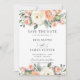 Cette carte chic de mariage à conserver présente une belle composition florale aquarelle ivoire, pêche et rose. Conçue pour correspondre à notre collection de mariage Luxe. Personnalisez-la facilement et rapidement avec vos détails, il suffit d'appuyer sur le bouton Personnaliser pour réorganiser et formater le style et l'emplacement du texte. (c) The Happy Cat Studio