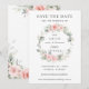 Cette carte de mariage élégante présente une superbe couronne florale aquarelle rose pâle. Conçue pour s'harmoniser avec notre collection de mariage Blossoms. Personnalisez-la facilement et rapidement avec vos informations, il suffit d'appuyer sur le bouton personnaliser pour réorganiser et formater le style et l'emplacement du texte. (c) The Happy Cat Studio