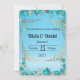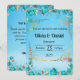 carte d'invitation de mariage florale bleu clair doré
