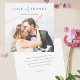 Ce modèle de mariage photo simple et chic présente un design élégant, minimaliste et moderne. La forme par défaut est les angles arrondis standard, mais les angles arrondis fonctionnent aussi merveilleusement avec ce design, alors essayez les deux regards et voyez lequel vous attrape! L'avant présente votre photo préférée, vos prénoms et un message 'LOVE and THANKS' transmis avec un mélange frappant de deux polices distinctes, avec 'and' dans un script léger et fluide entre le reste des deux autres mots, qui sont en coque supérieur avec un look formel audacieux et net. La partie "AMOUR et MERCI" du design ne peut pas être modifiée. Lorsque vous modifiez le recto pour afficher vos propres noms, vous pouvez modifier le format pour afficher vos prénoms avec le nom de famille, ou "M. et Mme......' ou tout ce qui vous convient le mieux. Sur le dos, nous avons défini l'arrière - plan comme transparent, de sorte que la couleur du papier servira simplement de couleur de base. Vous pouvez choisir une couleur pour l'arrière - plan, si vous préférez. La couleur de texte par défaut au dos est un noir légèrement adouci, mais vous pouvez la modifier si vous préférez une autre couleur. Nous avons mis un exemple de texte au dos pour que vous le remplaciez par votre propre message comme vous le jugez bon, mais s'il vous plaît ne vous sentez pas restreint par cela. Si vous préférez supprimer entièrement notre exemple de texte et garder le dos complètement vide afin que vous puissiez écrire une note manuscrite sur chaque carte à la place, vous pouvez le faire. Ou vous pourriez vouloir remplacer notre texte par votre propre message de gratitude et votre propre clôture, puis signer vos noms à la main lorsque vous recevez les cartes. Dans n'importe quel coque, n'oubliez pas de retirer tout l'échantillon/espace réservé de texte des deux côtés ainsi que notre photo échantillon ! Nous avons choisi mat plutôt que semi-brillant comme choix de papier par défaut, car il est bien adapté pour écrire votre propre message sur et ne sera pas suffisant. Vous pouvez bien sûr changer cela en semi-brillant, ou vous pouvez envisager de passer à quelque chose avec une texture comme "Laid" ou "Felt White" de zazzle, qui peut ajouter une sensation de chaleur et de profondeur. Nous espérons que vous aimerez expérimenter avec différents aspects de cet aspect mariage moderne et élégant modèle et le rendre unique avec les outils de conception intuitive, votre photo préférée et votre inspiration. Et s'il vous plaît vérifier notre boutique pour ce design dans un format de carte rectangulaire avec le texte "Amour et Merci" sur la partie inférieure de la carte, et les versions avec ce texte en blanc!
