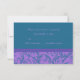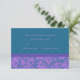Cartes de mariage RSVP en bleu turquoise élégant et violet foncé avec un design tourbillonnant simple et élégant. Personnalisable avec les détails de votre mariage, disponible dans de nombreux produits mariages correspondants.