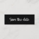 Annoncez votre mariage avec une élégance intemporelle grâce à une carte de marque-page "Save the Date" chic et minimaliste moderne noire. Parfaite pour les célébrations sophistiquées, ce design incarne la simplicité, le luxe et la fonctionnalité, donnant le ton pour votre jour spécial. Caractérisé par une typographie élégante et une esthétique contemporaine, ce style plaît aux couples qui prévoient des événements de gala, des mariages urbains ou des célébrations chic modernes. Son format unique de marque-page assure une impression durable tout en alliant praticité et design raffiné. Idéal pour ceux qui recherchent des solutions de papeterie de mariage innovantes et élégantes.