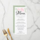L'élégante décoration du menu est composée de roses roses roses rousses nichées dans une verdure moderne. Le menu est écrit dans une belle police de caractères grand format. Il y a de la place pour que vous listiez et décriviez quatre plats. Vous pouvez facilement ajouter vos informations et ajuster la position. L'arrière de la carte de menu est vert sauge avec un motif feuille très subtil.