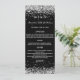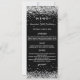 Une carte élégante et glamour. Personnalisez et ajoutez votre nom, votre date et le menu. Arrière - plan noir, décoré de faux confettis argentés.
