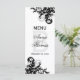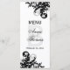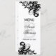 © 2013 Socialite Designs. Notre élégante carte de menu mariage personnalisée présente des fleurs/tourbillons de couleur noir et gris argenté à l'avant et à l'arrière. Le devant comprend les noms du couple et la date du mariage. L'arrière comprend les éléments de menu. Veuillez contacter Socialite Designs si vous avez besoin d'aide pour customiser cette carte de menu pour votre événement.