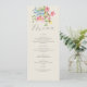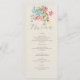 Ajoutez une touche romantique et fraîche à votre réception avec ce menu de mariage de printemps élégant. Décoré de fleurs sauvages d'aquarelle douce dans les tons rose pastel, jaune, bleu et vert, ce modèle de menu vertical s'ajoute parfaitement aux mariages de jardin printanier, rustique et boho. Listez vos délicieux entrées, plats et desserts dans un agencement élégant et facile à lire que vos invités apprécieront.