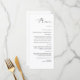 Menu élégant et moderne calligraphié pour mariage, fête ou anniversaire. Un design élégant en noir et blanc ou dans la couleur de fond de votre choix. Cliquez simplement sur le lien "personnaliser davantage" qui apparaît sous la zone de personnalisation du texte à droite, et choisissez la couleur de fond personnalisée. Ce modèle de panneau permet de créer rapidement et facilement de superbes éléments de décoration pour votre mariage. Les panneaux peuvent être réduits, il existe de nombreuses tailles au choix, ainsi que des options de cadrage et de mise en page personnalisés.