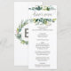 Cette carte feutrée pour le dîner est parfaite pour un mariage rustique. L'aménagement comprend un cadre boho composé de feuilles verts et de plantes botaniques verdoyantes. L'appui est assorti d'une couronne de pays qui peut être personnalisée avec le monogramme du couple. Ce menu peut être utilisé pour une réception de mariage, un dîner de répétition ou tout événement.