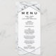 Cette carte de menu en marbre blanc et noir géométrique est parfaite pour un mariage moderne. Le design se compose d'un motif géométrique hexagone à la texture imitant le marbre qui orne les espaces de la motif. Ce menu peut être utilisé pour une réception de mariage, un dîner de répétition ou tout événement. Remarque : Ce design présente une texture de faux marbre.
