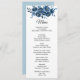 Cette carte de menu florale flue moderne est parfaite pour un mariage de destination. Cet élégant design floral peint à la main présente des fleurs gracieuses bleues, bleues foncées et indigo aux feuilles verts, représentant une beauté naturelle majestueuse. Ce menu peut être utilisé pour une réception de mariage, un dîner de répétition, une douche nuptiale ou tout événement.