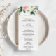 Cette carte à la carte à la décoration florale élégante et verdoyante est parfaite pour un mariage rustique. Le design est composé de roses blancs, roses et roux peints à la main et d'une touche de verdure, ornant des cadres géométriques dorés, inspirant la beauté artistique. Ce menu peut être utilisé pour une réception de mariage, un dîner de répétition, une douche nuptiale ou tout événement.
