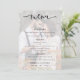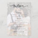 Menu du Mariage de script de superposition transparente photo moderne. Une typographie informelle en noir pour le titre principal Menu complétant le reste du texte que vous pouvez facilement personnaliser. Remplacez l'exemple de photo qui est teinte dans l'arrière - plan par votre préféré.