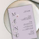 Ce menu simple de table mariage de design botanique aquarelle a une typographie élégante pour créer une ambiance simple et élégante. Facile à personnaliser pour votre chic mariage à thème rose moderne.
