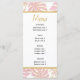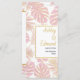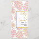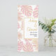 Carte de menu feuille rose et or mariage. Ce joli design présente des feuilles de Split Leaf Philodendron (Monstera deliciosa) ou de Plante de Fromage Suisse et des feuilles de palme en rose vif avec contour d'or. Votre libellé est dans un cadre blanc avec contour doré.