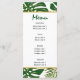 Carte de menu feuille vert et or mariage. Ce joli design présente des feuilles de Split Leaf Philodendron (Monstera deliciosa) ou de Plante de fromage suisse et des feuilles de palme en vert avec contour d'or. Votre libellé est dans un cadre blanc avec contour doré.
