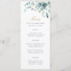Cartes de menu mariage personnalisées. Utilisez les outils de conception pour personnaliser la mise en page, les couleurs arrière - plans et le texte avec les détails du menu mariage. Cet élégant design présente une bordure florale aquarelle de verdure succulente et fleurit avec de l'or et du texte marine.