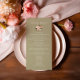Apportez une touche élégante à vos tables de réception de mariage avec cette carte à la sauce vert floral. Doté de fines fleurs pastel associées à une typographie de script moderne, il conviendra parfaitement aux mariages d'inspiration jardin, printanière ou romantique. Customisez facilement avec vos produits de menu pour un look de réception sophistiqué et cohésif. Complétez le look avec des invitations assorties, des numéros de table, et plus encore dans cette élégante collection florale.
