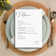 Présentez notre Elegant Hand Lettered Mariage Menu Card, l'ajout parfait à votre décoration de réception de mariage. Ce menu magnifiquement conçu comprend le mot "Menu" dans un élégant script à la main en haut à gauche, donnant un ton sophistiqué pour votre événement. Le menu personnalisé est élaboré dans une police de style serif noir intemporelle, alignée à gauche pour un look classique. En bas à droite, les noms du couple sont affichés dans une extravagante police de caractères sous le mot "savourez !" écrit dans un script personnalisé écrit à la main. La disposition verticale de 5"x7" sur un arrière - plan blanc immaculé garantit que ce menu complétera n'importe quel thème mariage, ajoutant une touche d'élégance et de personnalisation à votre journée spéciale. Parfait pour les couples qui veulent impressionner leurs invités avec une touche sophistiquée et customisée, notre Elegant Hand Lettered Mariage Menu Card est non seulement un article fonctionnel mais aussi un souvenir mémorable. Customisez-le avec le menu de votre choix et régalez vos invités avec la présentation élégante.