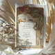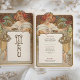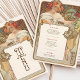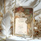 Ajoutez une touche d'élégance à votre table mariage avec cette carte de menu d'inspiration Art Nouveau. Doté d'une femme sophistiquée tenant une chandelle, ce design mêle bleu marine, or chaud et teintes crème douce pour une esthétique intemporelle et luxueuse. L'avant présente une figure de style vintage et une typographie "Menu" audacieuse, tandis que l'arrière détaille un menu gastronomique encadré d'un art élégant complémentaire. Parfait pour les mariages de soirée vintages, formels ou aux chandelles, cette carte de menu ajoute un sens de romantisme et de sophistication à votre journée spéciale.