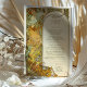 Venez passer une journée inoubliable grâce à l'élégance intemporelle de notre carte de menu Mariage inspirée de l'Art Nouveau, qui reflète le style emblématique d'Alphonse Mucha. Cette carte de menu est un chef-d'oeuvre de couleurs harmonieuses et de lignes sinueuses, capturant l'essence du mouvement artistique du début du siècle qui célébrait la beauté sous toutes ses formes. La carte présente une délicate palette d'or, d'émeraude et d'ivoire, accentuée par des nuances subtiles de pêche, de vert de mer et de sienne brûlée. Au centre, une femme gracieuse, rappelant les figures éthérées de Mucha, se recline au milieu d'un cadre orné de motifs tourbillonnants et de feuillage complexe. Cette carte n'est pas seulement un menu, mais une oeuvre d'art qui enchantera vos invités et servira de garant de vos moments chéris.