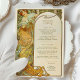 Carte de menu Mariage Art Nouveau Mucha Elegance