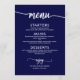 Carte de menu Mariage bleu marine