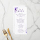 Le design présente les images de violettes délicates dans les coins supérieur gauche et inférieur droit. Le Monogramme de la Mariée et de la Salle s'affiche en haut, suivi de l'en-tête du menu et des options du menu. Tout le texte est personnalisable. Reverse présente une croix et une image plus grande d'un bouquet de violet. Conçu pour coordonner avec la "Suite Mariage catholique violette élégante".