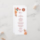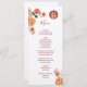 Cette carte de menu chinoise moderne et blanche présente des fleurs de pivoine rouge, orange et neutre et un double symbole de bonheur doré sur un arrière - plan blanc. Avec des noms de mariée et de mariée personnalisés, la date du mariage et un texte de menu personnalisé. L'écriture manuscrite et la police sans serif donnent au design une touche plus moderne.