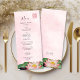 Cette carte de menu chinoise moderne mariage présente une fleur de lotus d'aquarelle sur un arrière - plan d'aquarelle rose et un double symbole de bonheur rose sur un arrière - plan crème. Avec des noms de mariée et de mariée personnalisés, la date du mariage et un texte de menu personnalisé. À l'arrière se trouvent les initiales à modifier.