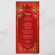 Des fleurs de cerisiers rouges et un double symbole de bonheur doré sur un arrière - plan rouge chatoyant. Avec des noms de mariée et de mariée personnalisés, la date du mariage et un texte de menu personnalisé.