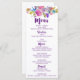 Cette carte de menu mariage monogramme aux fleurs violettes et roses est parfaite pour un mariage à thème fleuri. Le design est composé de magenta clair, rose, prune, violet et fleurs bleues, et d'une belle police de caractères gras. Personnalisez le support de la couronne fleurie avec les initiales de la mariée et du marié dans un beau monogramme. Conçu avec soin par Miriam à Fresh & Yummy Paperie. Veuillez me contacter pour toute personnalisation de conception dont vous avez besoin. Pour la coordination des articles, veuillez visiter mon magasin Zazzle :