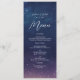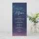 Donnez le ton pour une expérience magique de dîner avec cette carte de menu mariage céleste élégante. Avec un arrière - plan de nuit étoilé de couleur marine et violette, ce menu dresse une belle liste d'entrées, d'entrées et de desserts dans un agencement romantique et élégant. Parfait pour les mariages étoilés, cosmiques et nocturnes, ce design ajoute une touche d'émerveillement à vos tables de réception. Personnalisez facilement le texte pour correspondre à votre repas mariage et à votre thème céleste global.