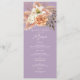 Améliorez vos tables de réception grâce à cette carte de menu élégante pêche et mariage à fleurs violettes. Présentant des roses délicats d'aquarelle, des accents d'herbe pampas et un arrière - plan de lavande douce, ce design ajoute un charme romantique et rustique à votre journée spéciale. Entièrement personnalisable pour présenter magnifiquement vos choix de repas mariages.