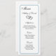 Cette carte de menu mariage est affichée sur du papier de base dans une impression de bordure en bleu fumée avec une impression de deux coeurs. Script et texte standard en couleur noire. Customisez en cliquant sur le bouton personnaliser, cherchez à droite et trouvez les cases appropriées pour modifier vos informations.