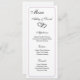 Cette carte de menu mariage est affichée sur du papier de base dans une impression de bordure dans une couleur d'améthyste fumé avec une impression de deux coeurs. Script et texte standard en couleur noire. Customisez en cliquant sur le bouton personnaliser, cherchez à droite et trouvez les cases appropriées pour modifier vos informations.