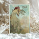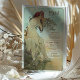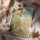 Cette carte de menu Art Nouveau mariage apporte un charme serein et nature à votre mariage. Le design présente une femme tranquille, ornée d’une couronne de fleurs rouges, assise paisiblement au bord de l’eau, avec des branches fluides et un feuillage doux autour d’elle. La palette de couleurs apaisantes de bleus doux, de beiges chauds et de verdure feutrée renforce l'atmosphère rêvée et vintage de cette carte, parfaite pour les mariages avec un thème naturel ou bohème. Le dos de la carte présente le menu dans un agencement raffiné, ce qui en fait un ajout élégant à votre décor de jour spécial.