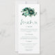 Carte de menu Mariage Emerald and Gold Florals moderne. Disponible numériquement et imprimé. De belles fleurs sont en haut, avec un script élégant pour Menu et facile à personnaliser le reste du texte à vos exigences.