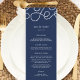 Le menu mariage chic côtier en bleu marine classique vous propose des entrées, des entrées et des desserts en lettres blanches, avec vos noms et votre date de mariage surmontés d'une illustration de corde nautique blanche. Coordonnée avec notre collection Seaworthy pour les mariages nautiques, de plage ou d'été et les célébrations. Utilisez les champs modèle pour ajouter les informations de votre menu, puis cliquez sur "Personnaliser" pour repositionner les éléments si nécessaire. Besoin d'aide ? Contactez-moi via le lien "Demandez à ce concepteur" sur cette page.