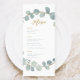 Carte de menu Mariage Eucalyptus à l'aquarelle arg