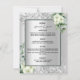Carte de menu mariage floraux blancs en argent