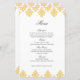 Carte de menu Mariage Jaune blanc Damas Arabesque
