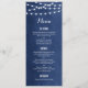 Design chic de carte de menu mariage d'été moderne avec des lampes à cordes élégantes et simples accrochées au sommet et un mélange classe de polices de script modernes et de calligraphie sur un arrière - plan imprimé de texture fausse aquarelle. Un design simple et élégant, parfait pour l'été ! Cliquez sur le bouton CUSTOMISER IT pour customiser les polices, déplacer du texte et créer votre propre conception unique d'invitation unique.