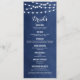 Design chic de carte de menu mariage d'été moderne avec des lampes à cordes élégantes et simples accrochées au sommet et un mélange classe de polices de script modernes et de calligraphie sur un arrière - plan imprimé de texture fausse aquarelle. Un design simple et élégant, parfait pour l'été ! Cliquez sur le bouton CUSTOMISER IT pour customiser les polices, déplacer du texte et créer votre propre conception unique d'invitation unique.