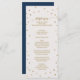 Cette carte de menu mariage pois or est parfaite pour un mariage élégant. Le design simple présente des confettis d'or chic sur un arrière - plan de champagne crémeux avec une belle calligraphie fausse feuille d'or et un fond bleu marine. Remarque : Ce design ne comporte pas de véritable feuille d'or. C'est un graphisme de haute qualité fait pour ressembler à du papier doré.