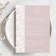 Carte de menu Mariage rose pâle Monogram Crest
